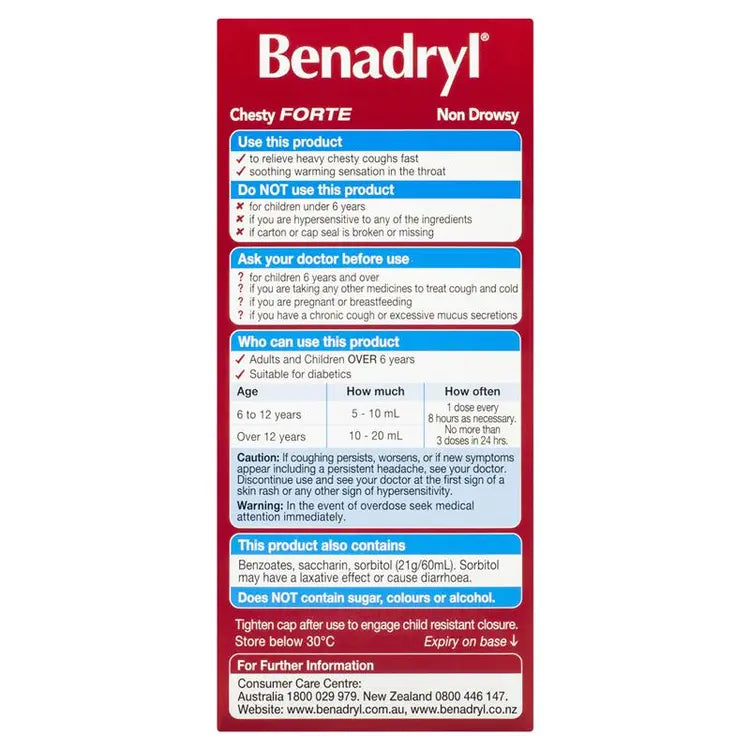 Benadryl Chesty Forte Cough Liquid Berry Flavour 200mL