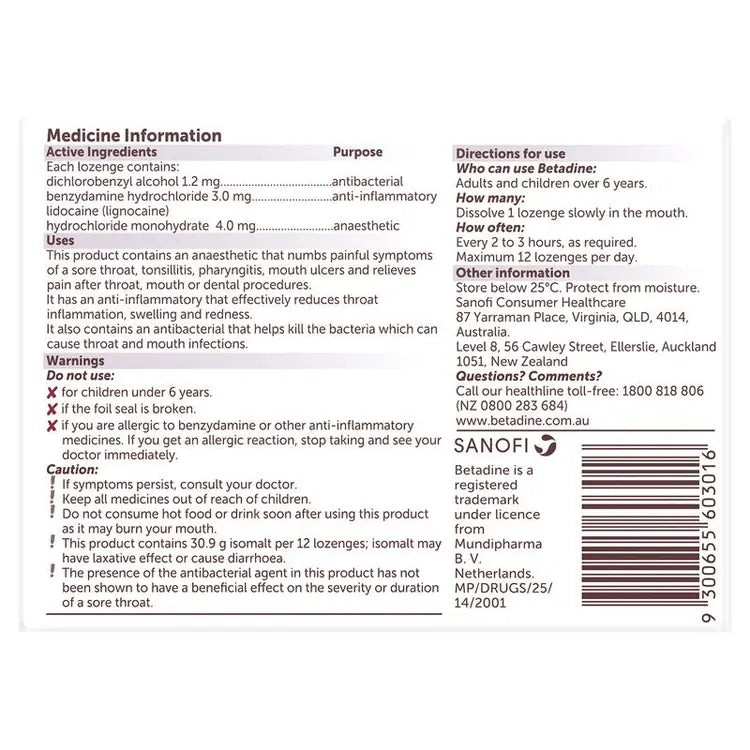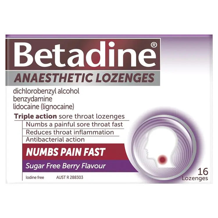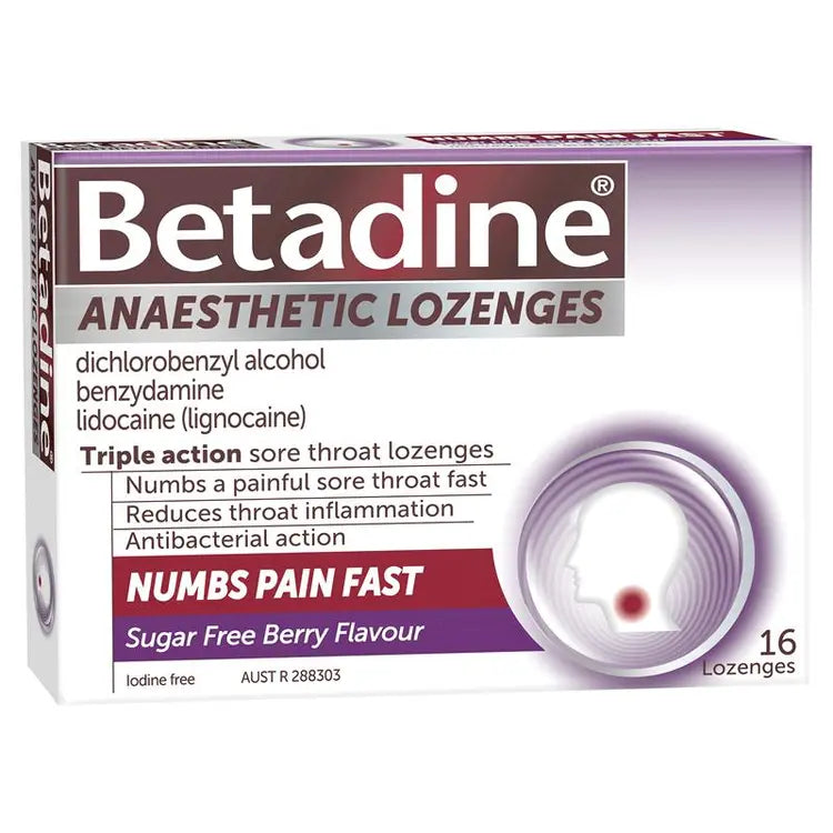 Betadine Sore Throat Lozenges Anaesthetic Berry Flavour 16 Pack