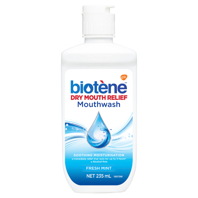 Biotène® Dry Mouth Oral Rinse is specially formulated to provide immediate Dry Mouth symptom relief that lasts for up to 4 hours* while it freshens your breath. When used as part of your daily oral health care routine, it is an ideal oral rinse for managing your Dry Mouth symptoms.