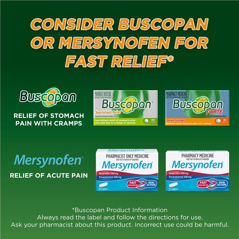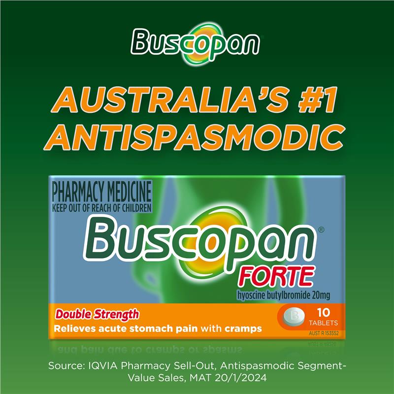 Buscopan Forte Stomach Cramps Pain Relief 20mg Tablets 10 Pack
