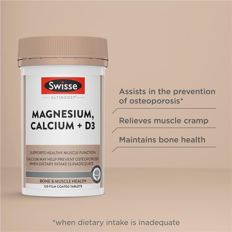 Swisse Ultiboost Magnesium Calcium + Vitamin D 120 Tablets