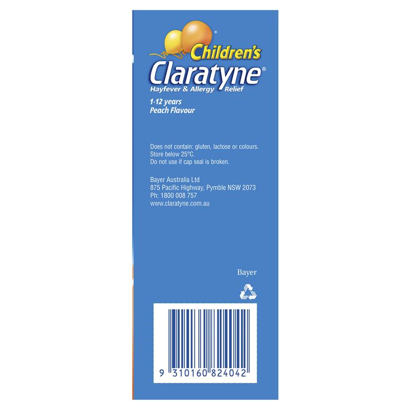Children's Claratyne Allergy & Hayfever Relief Syrup For Kids Peach Flavour 150mL