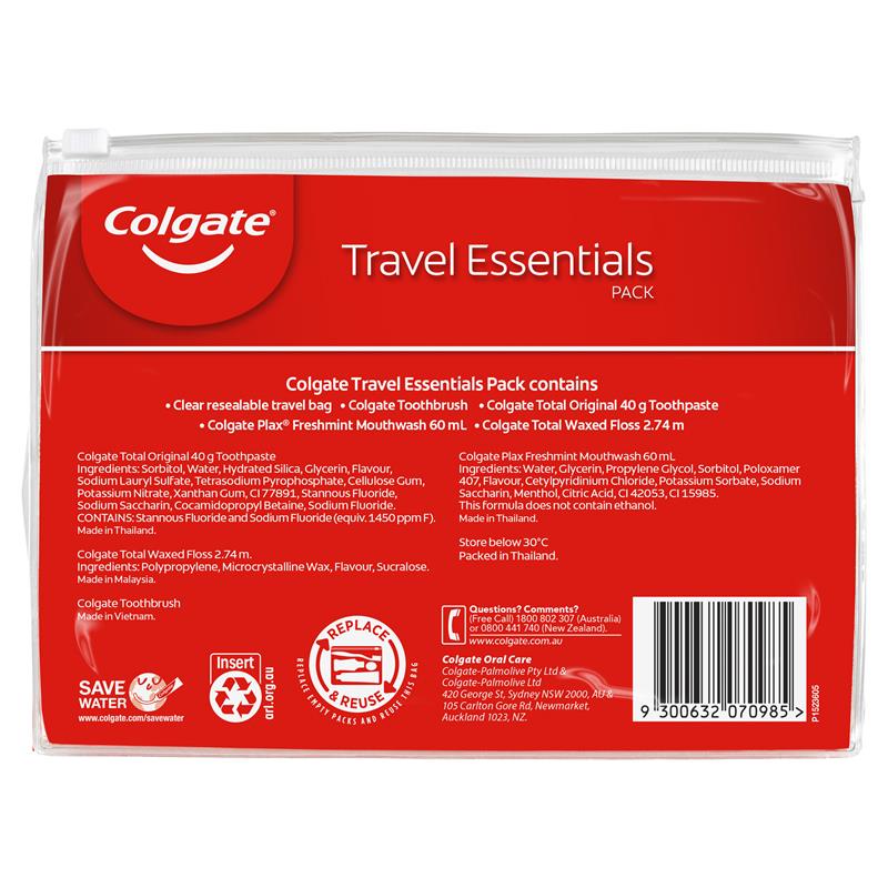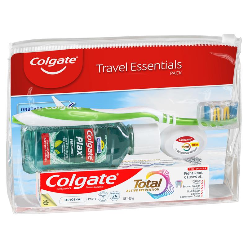 Colgate Travel Essentials Toothbrush, Toothpaste, Mouthwash, Floss & travel bag Pack