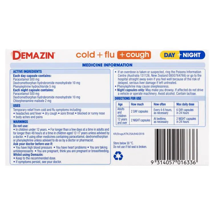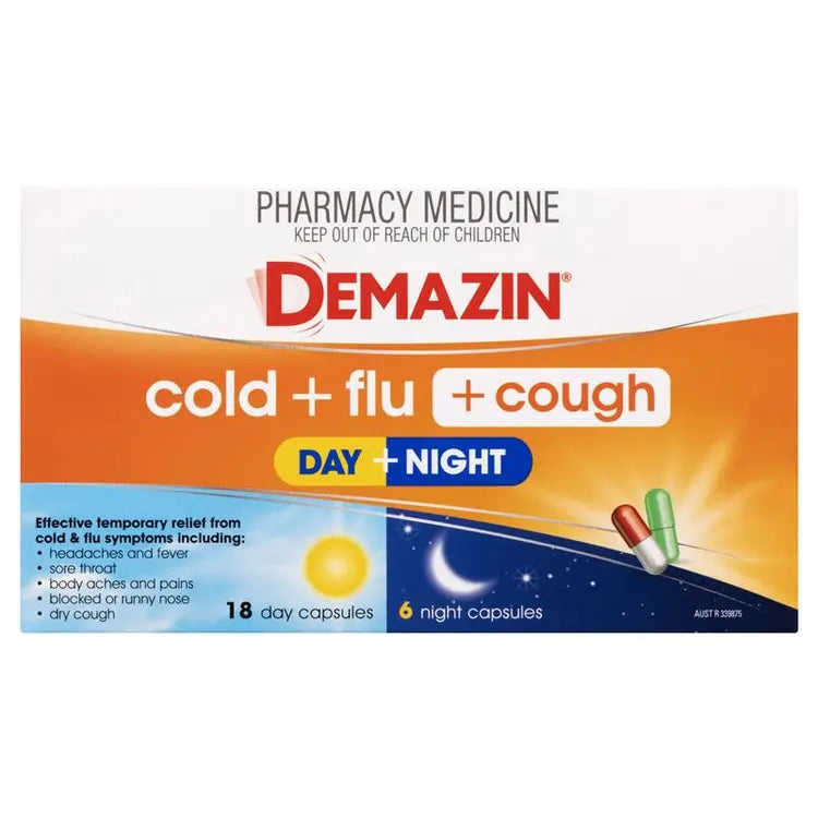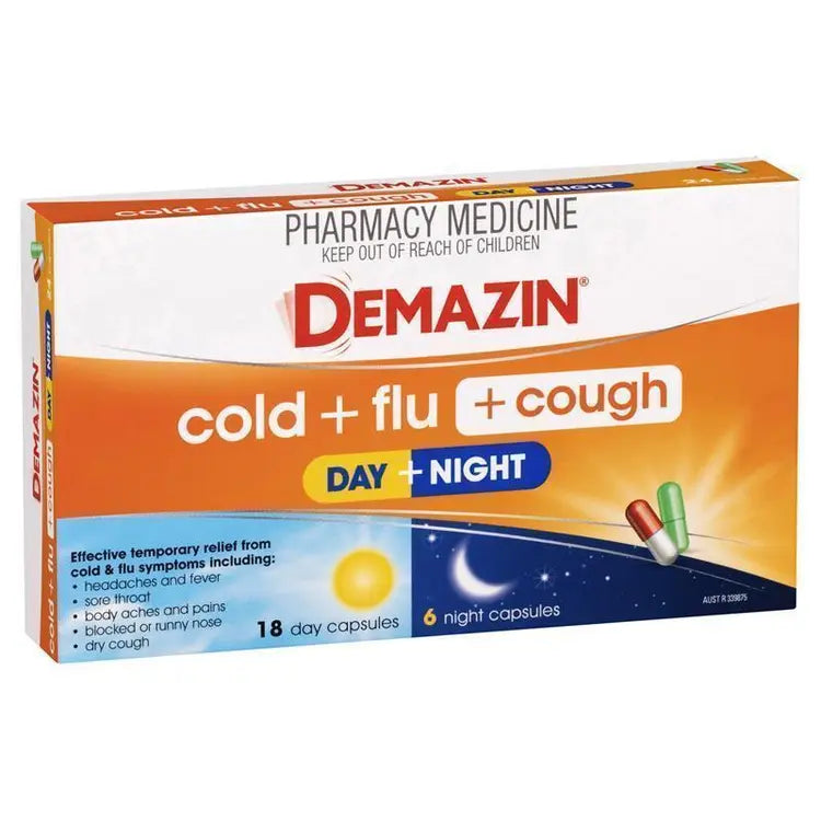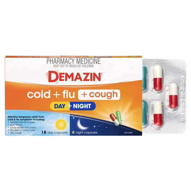 Demazin Cold + Flu + Cough Day + Night 24 Capsules