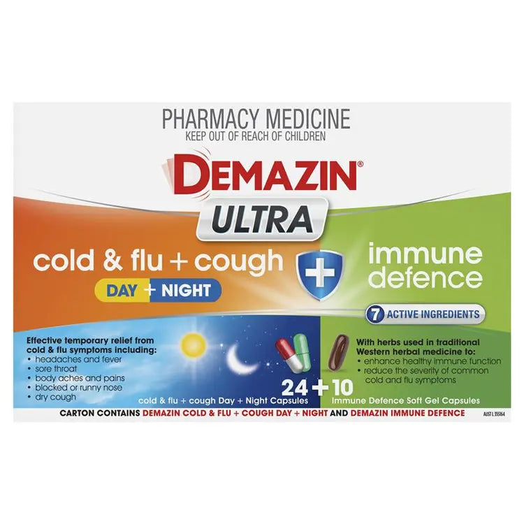 Demazin Ultra Cough Cold & Flu + Immune Defence 34 Capsules