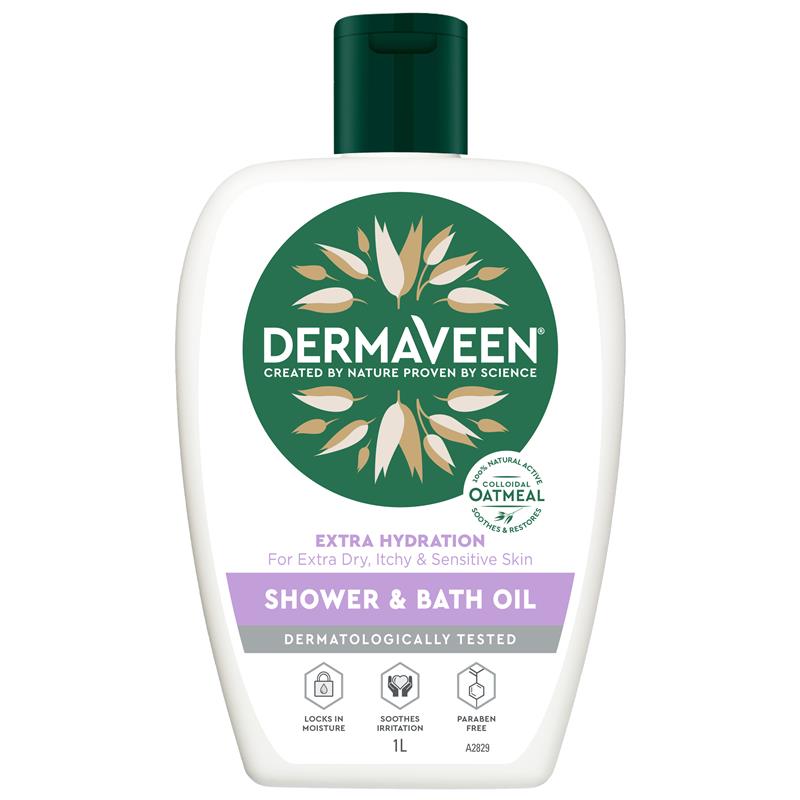 DermaVeen Extra Hydration Shower & Bath Oil for Extra Dry, Itchy & Sensitive Skin 1L