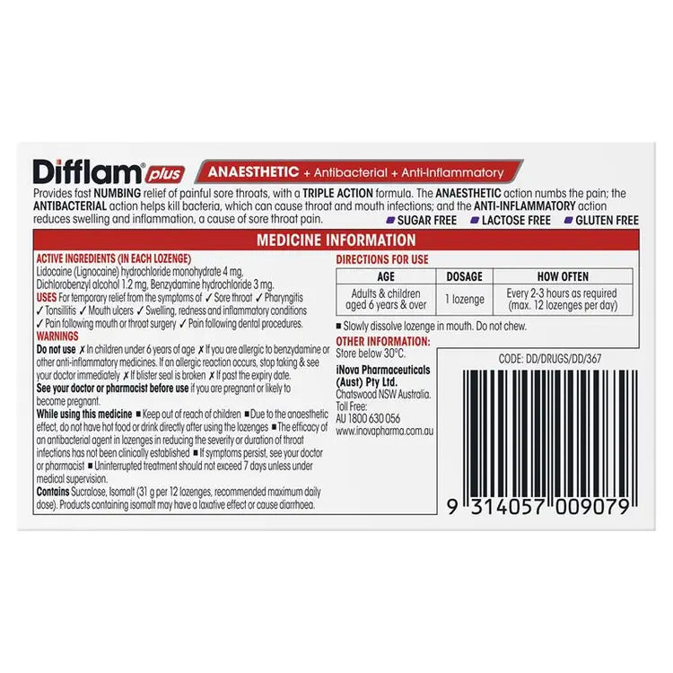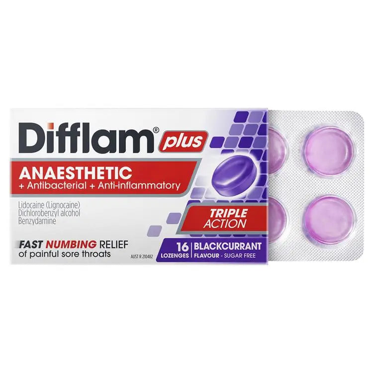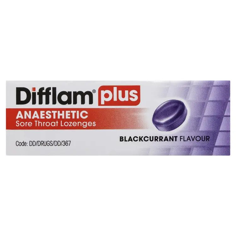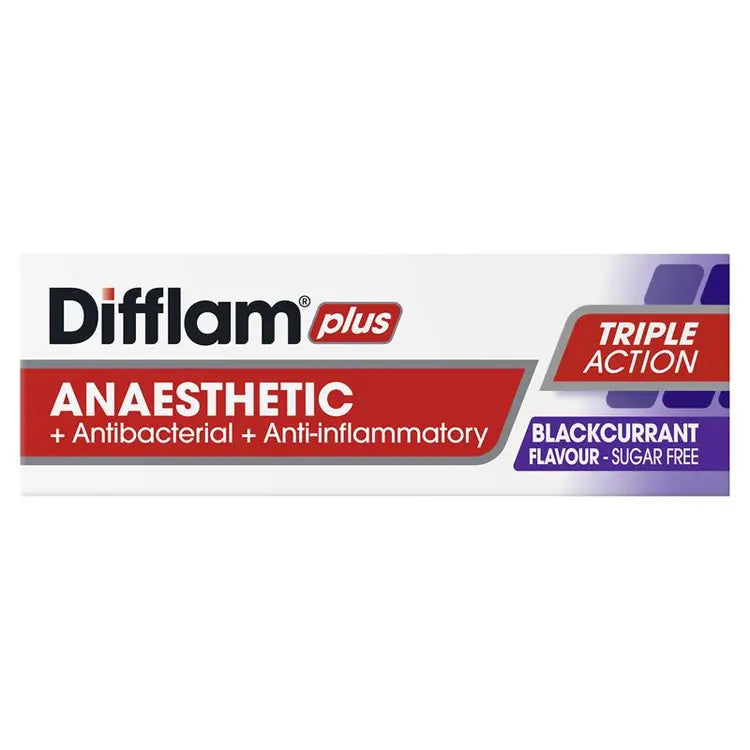 Difflam Plus Anaesthetic Sugar Free Blackcurrant 16 Lozenges