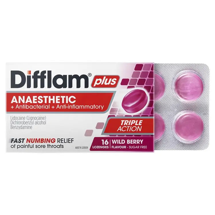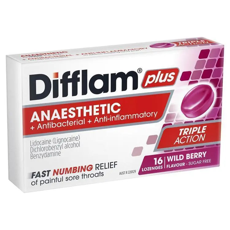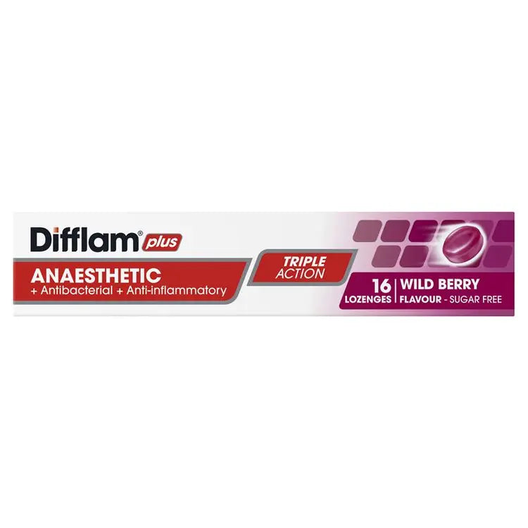 Difflam Plus Anaesthetic Sugar Free Wild Berry 16 Lozenges