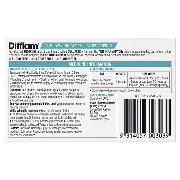 Difflam Sore Throat Sugar Free Orange 16 Lozenges