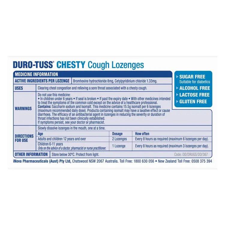 DURO-TUSS Chesty Cough Lozenges Lemon 24 Lozenges