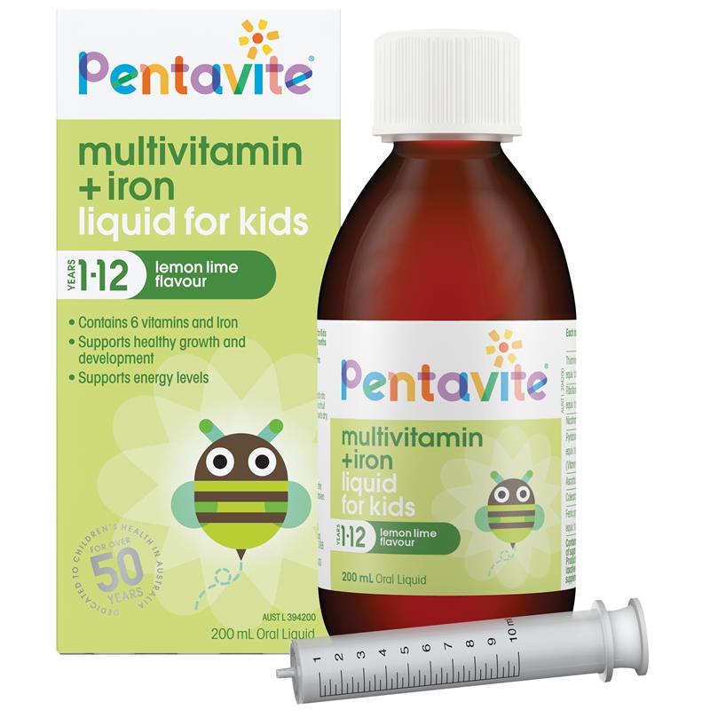 Pentavite Multivitamin + Iron Kids Liquid Lemon Lime 200ml NEW