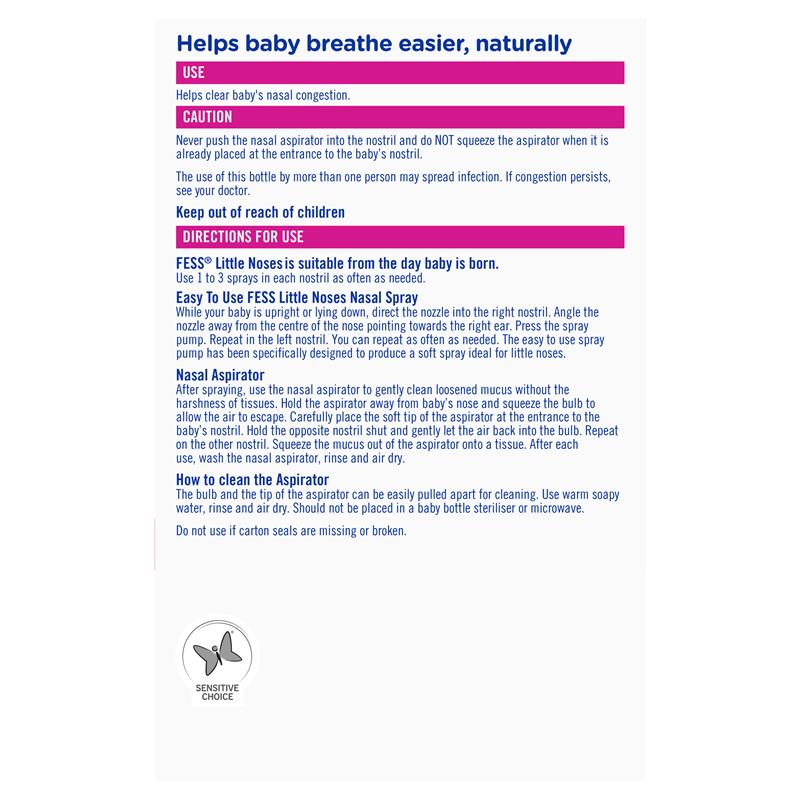 Fess Little Noses Saline Nose Spray + Aspirator 15ml