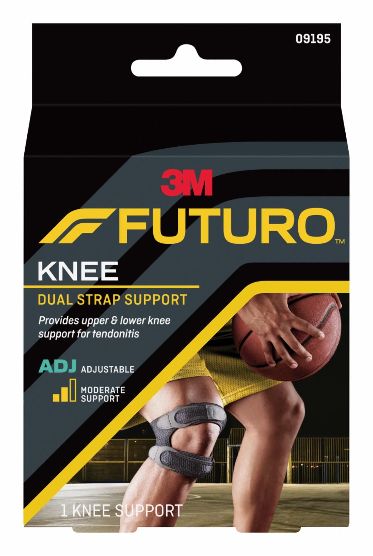 The FUTURO™ Dual Strap Knee Support is designed with two straps that are equipped with a gel pad, delivering targeted compression to your upper and lower knee so you can stay on track with your training regimen. The adjustable straps let you customise your support and deliver the perfect fit. The lightweight, breathable fabric helps keep you cool and comfortable from warm-up to cool down. Whether you're training for a marathon or live for intense interval workouts–reach for the FUTURO™ Dual Knee Strap Support.