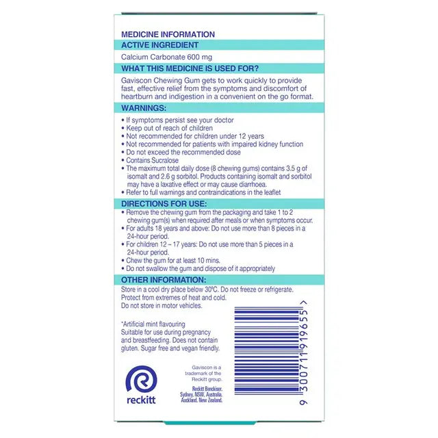 Gaviscon Chewing Gum Cool Mint 20 Gums