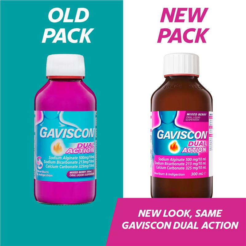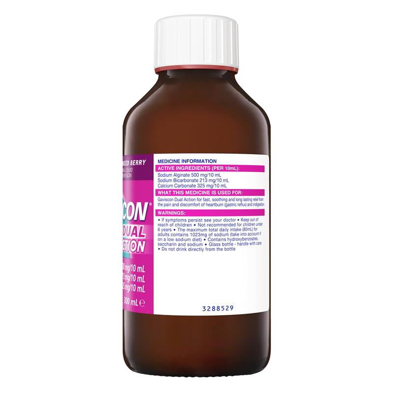 Gaviscon Dual Action Liquid Mixed Berry Flavour Heartburn and Indigestion Relief 300ml