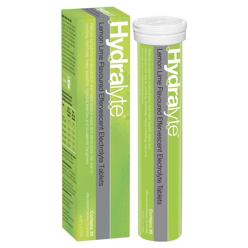 Hydralyte Effervescent Lemon Lime Electolyte Tablets 20 Pack