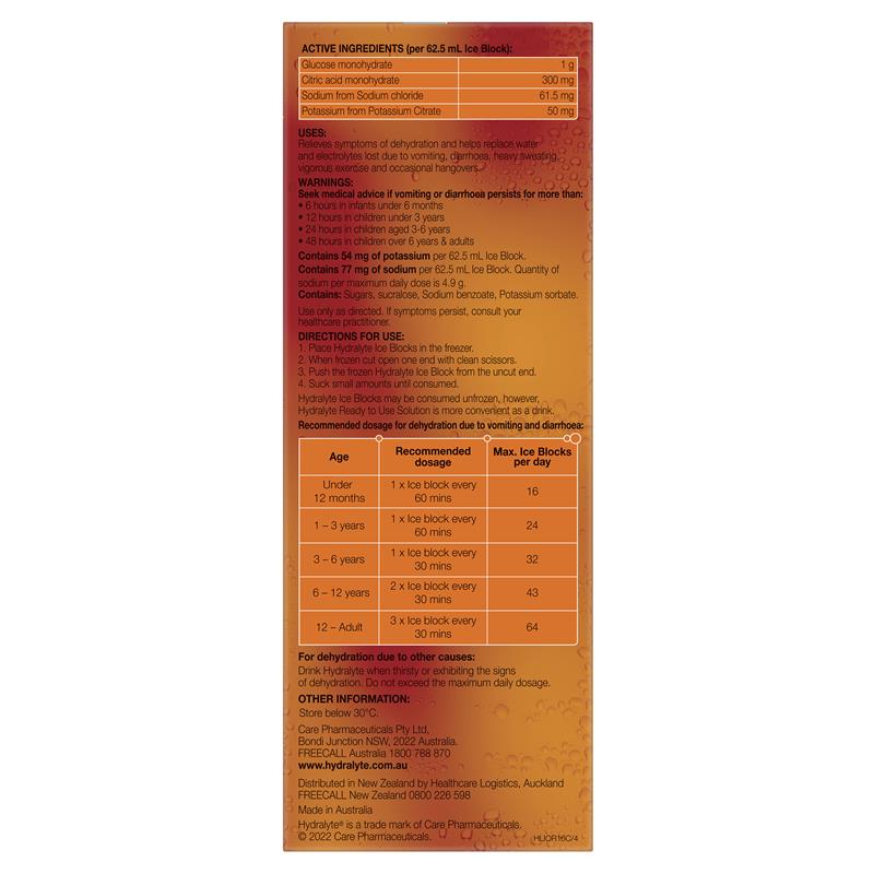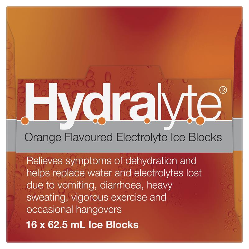 Hydralyte Rehydration Orange Flavoured Ice Blocks 16 Pack