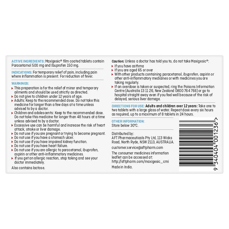 Maxigesic Double Action Combination Pain Relief 12 Tablets