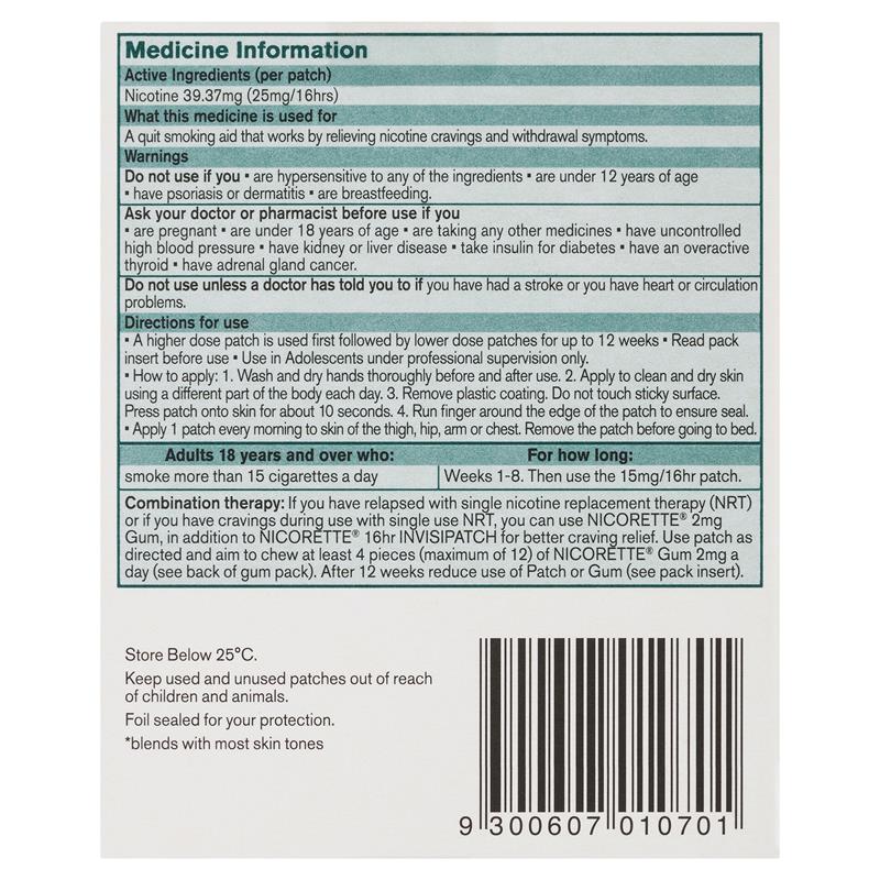 Nicorette Quit Smoking Nicotine 16 hour Invisipatch Step 1 25mg 7 Pack