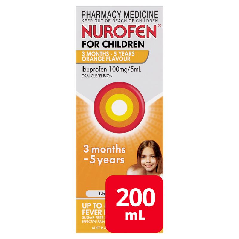 Nurofen For Children 3 months - 5 years Pain and Fever Relief 100mg/5mL Ibuprofen Orange 200mL