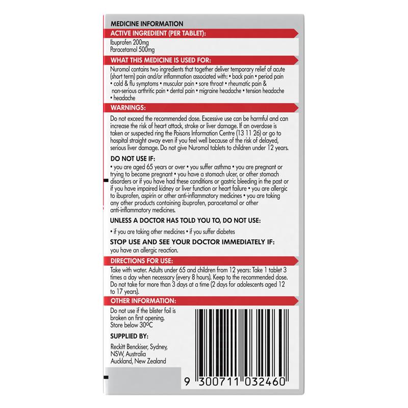 Nuromol Strong Pain Relief 200mg/500mg Tablets 24 - Ibuprofen + Paracetamol (S3)