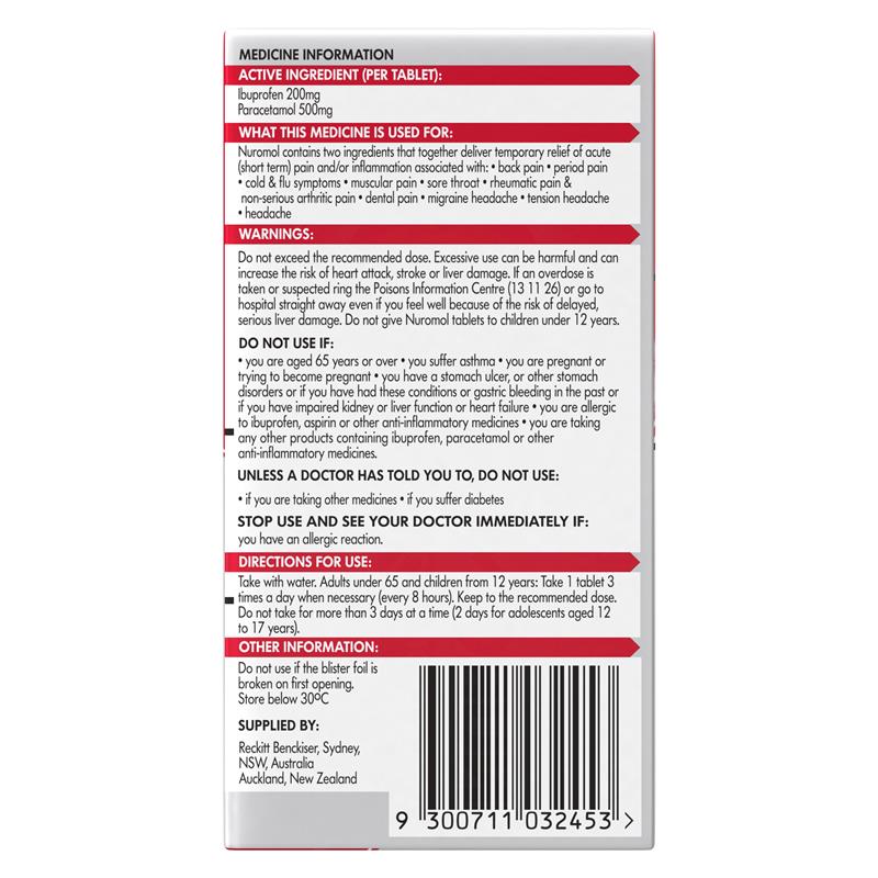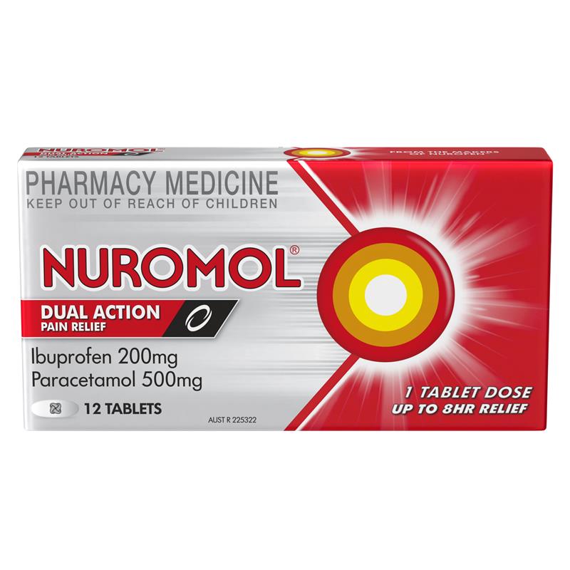 Nuromol Strong Pain Relief Tablets 12 pack Ibuprofen 200mg Paracetamol 500mg