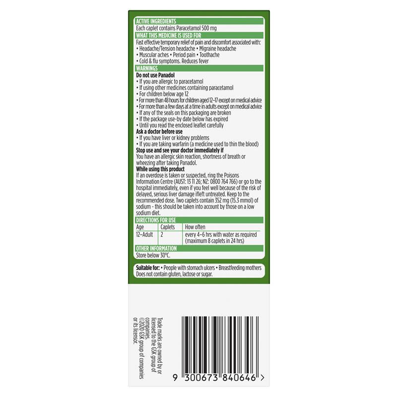 Panadol Rapid Paracetamol Pain Relief Caplets 500mg 40