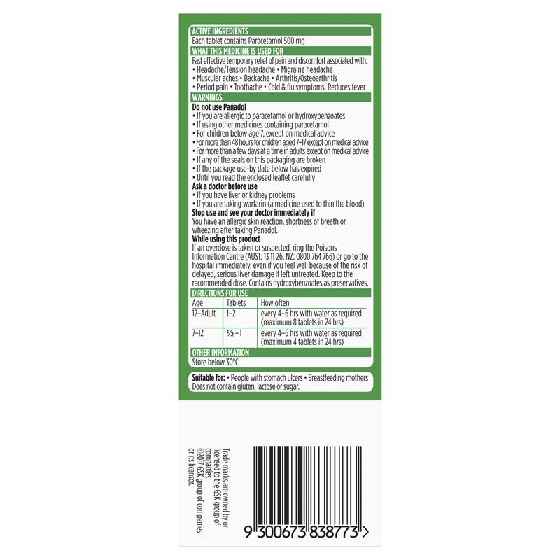 Panadol with Optizorb Paracetamol Pain Relief Tablets 500mg 50