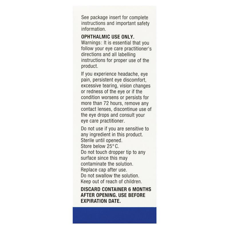 Instil 1 or 2 drops in the aected eye(s) as needed or as directed by your eye care professional. May be used as needed throughout the day.