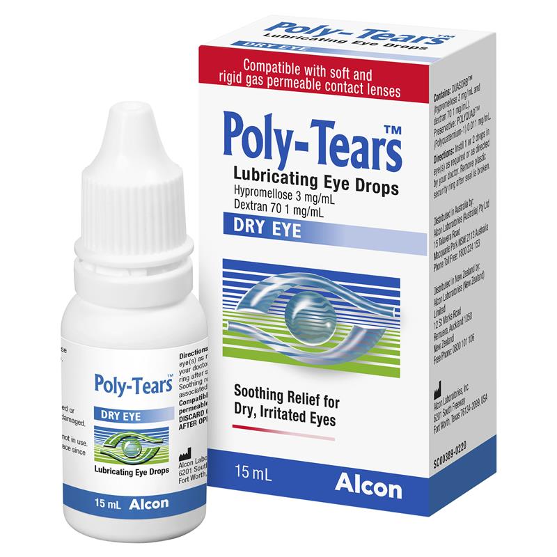 Poly-Tears may be used for rewetting of all soft (hydrophilic) and rigid gas permeable contact lenses, including daily, extended wear, and disposable, to relieve discomfort and minor irritation or blurring, which may be caused by wearing contact lenses.
