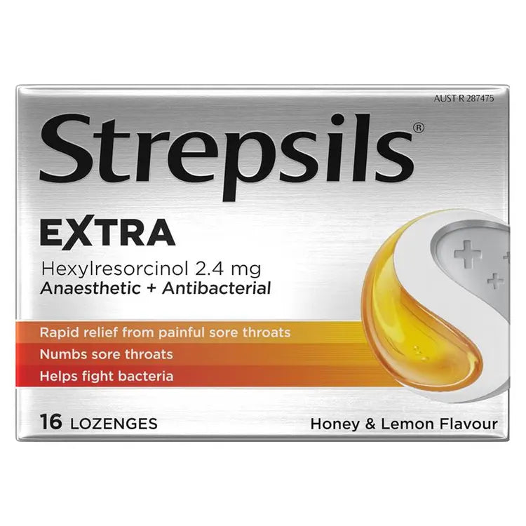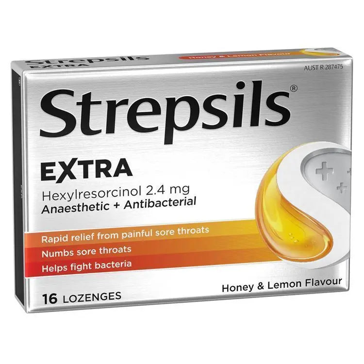 Strepsils Extra Honey Lemon Lozenges 16pk Fast Numbing Sore Throat Pain Relief with Anaesthetic