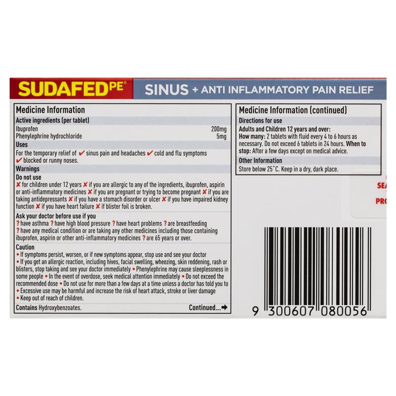 Sudafed PE Sinus + Anti Inflammatory Pain Relief 24 Tablets
