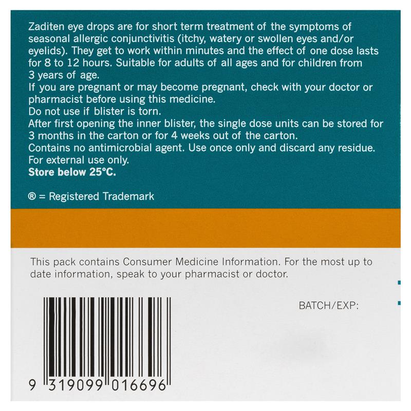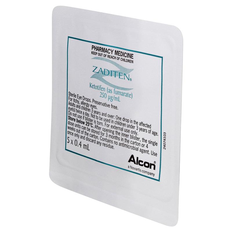 Zaditen 0.025% Eye Drops Unit Dose 0.4ml 20 Single Dose Units